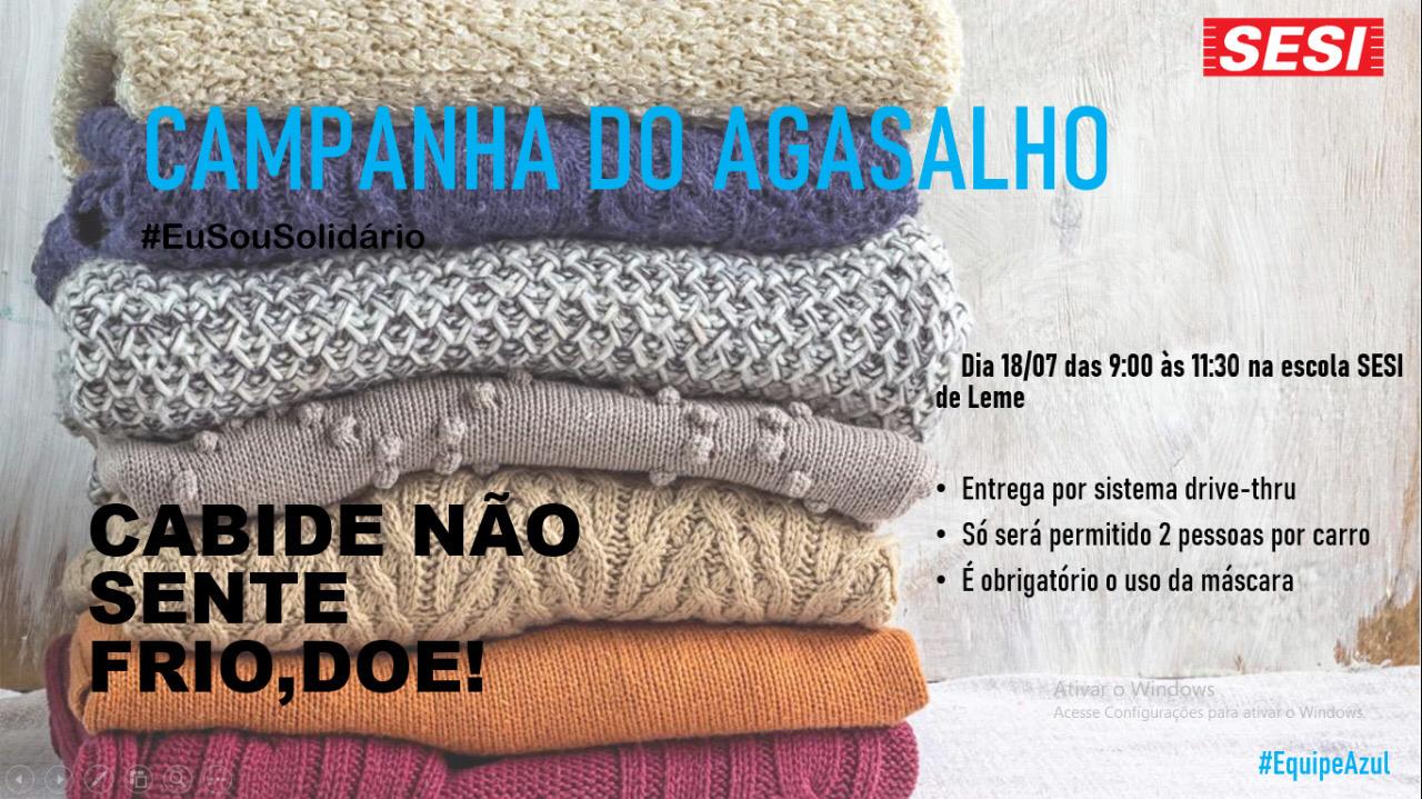 Os alunos da Escola SESI Leme participaram de uma gincana na qual tinham que elaborar um cartaz para incentivar a doação de peças para a Campanha do Agasalho, promovida pelo SESI Senai SP e Ciesp com o apoio da Fiesp.