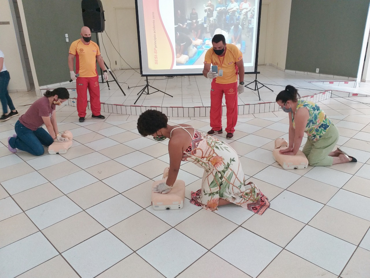 Cuidadoras, coordenadoras e diretores de creches da Prefeitura de Santo Antônio de Posse participaram de um workshop sobre Noções Básicas de Primeiros Socorros. O curso foi ministrado pelos guarda-vidas do Sesi de Mogi Guaçu e Araras, Giovanni Ragoni Marinho da Silva e Carlos Fabiano Trinchetti com acompanhamento da orientadora de Qualidade de Vida do Sesi Mogi Guaçu, Raissa de Campos Oliveira.