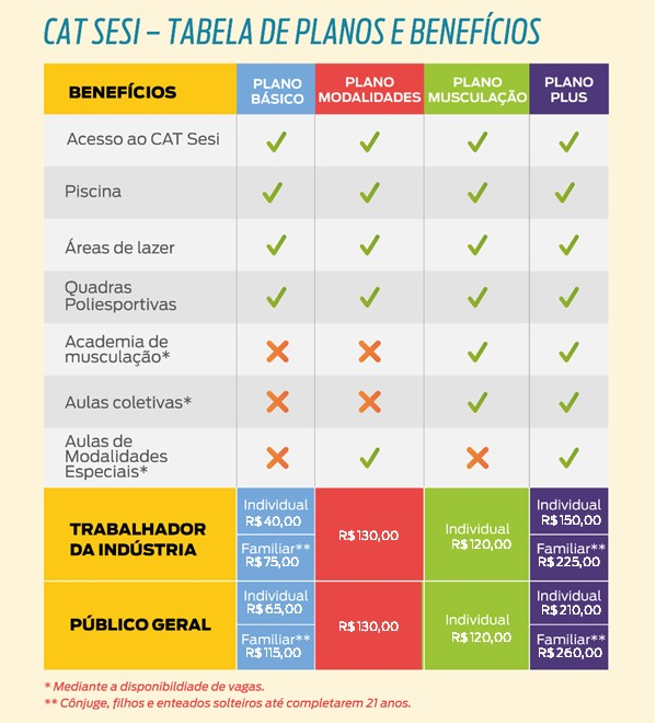Tabela de Planos e Benefícios CAT Sesi Araras