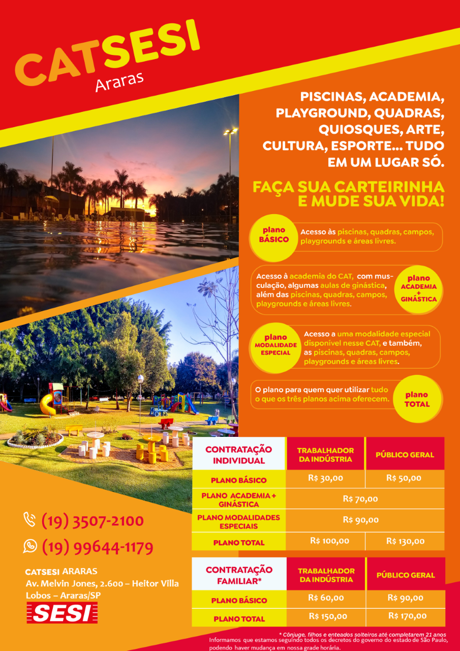 Plano Modalidades Especiais: direito à livre utilização do Centro de Atividades e a uma aula especial, podendo escolher entre: natação, hidroginástica, Pilates e Dança.