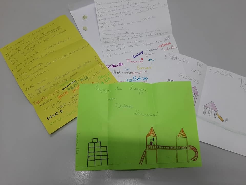 Os estudantes entregaram uma carta pontuando algumas necessidades para os diferentes espaços de esporte e lazer existentes nos bairros onde residem como corte de grama, iluminação, pintura, término de um parque que foi iniciado e abandonado, conserto de alguns brinquedos e segurança no uso dos espaços, devido a animais soltos