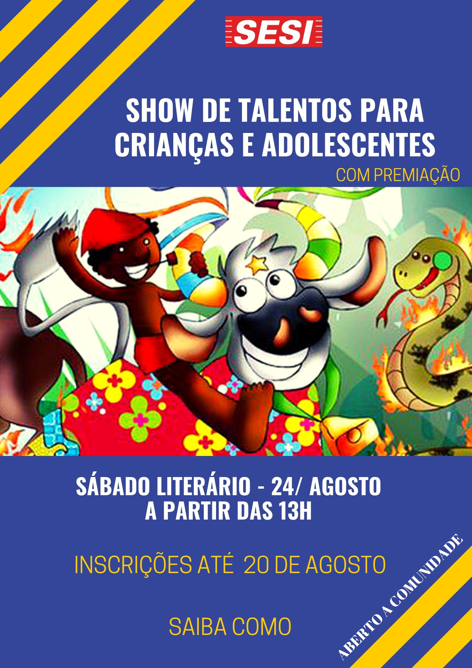 Com objetivo de proporcionar aos participantes momentos de descontração e diversão, o SESI Araras promove o Show de Talentos para crianças e adolescentes. A atividade faz parte do 1º Sábado Literário, que acontece no dia 24 de agosto, das 13h às 17h.